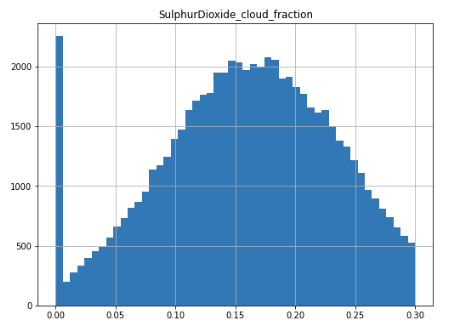This could indicate duplicate records or at least overrepresentation of data at specific times of year, but it turns out I screwed up and coded the number of bins to 50 so a couple of weeks “tied” and made it look like there was double counting. There are also two distributions which have a spike of values at 0 which makes me question whether those are accurate readings or if 0 is a default value on at least some of them: